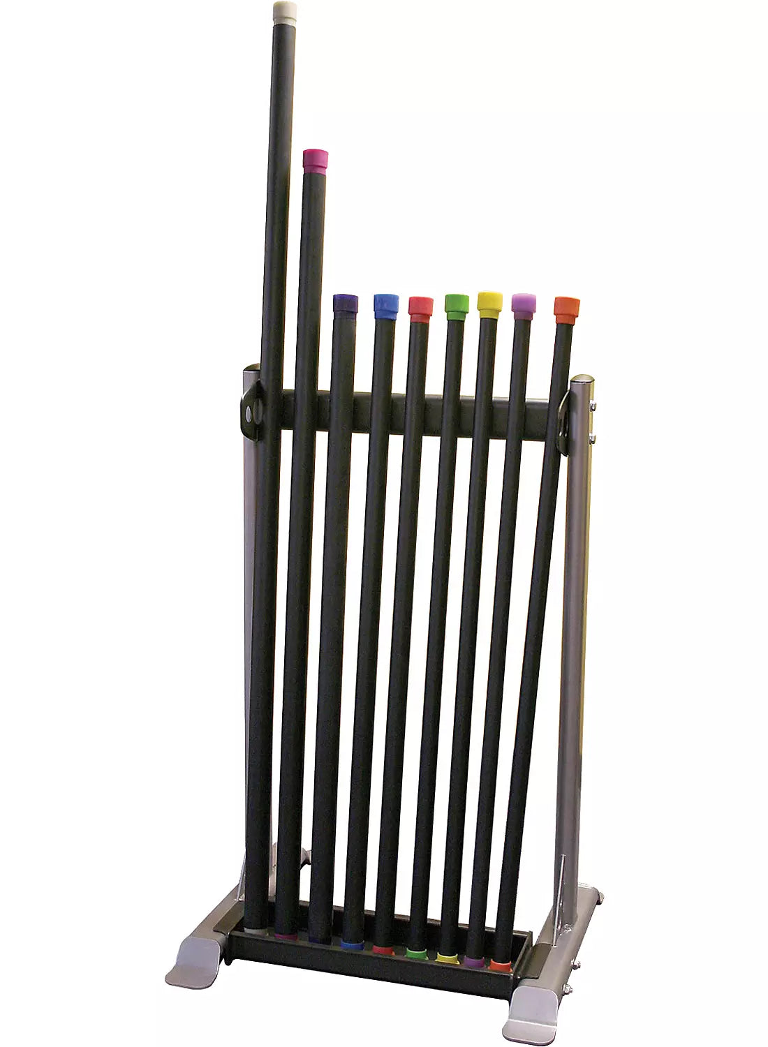 - Vertical Storage for up to 30 Fitness Bars