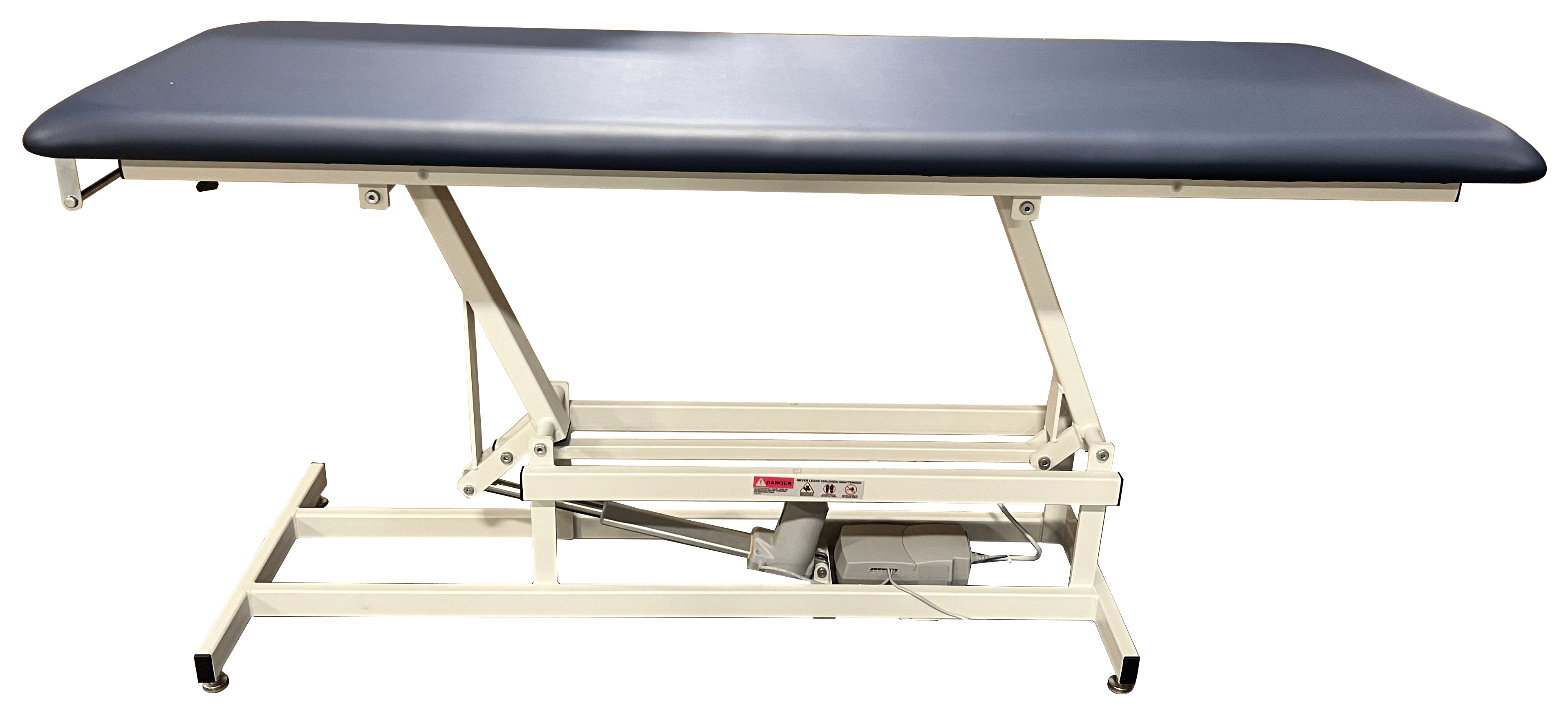 This sturdy table allows for full height adjustment using a hands-free foot pedal to make transfers and treatment easy for both the patient and clinician. Topped with 1” high density foam and covered in heavy-duty vinyl, the steel-framed power adjustable table includes infection control measures such as Permablok coating and seamless, radiused corners.