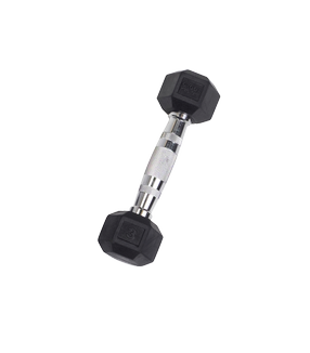 Made from solid cast iron with a 6-sided anti-roll design and encased in rubber, this dumbbell is stylish as it is durable. Available in 3 lb. to 40 lb. individual dumbbells.